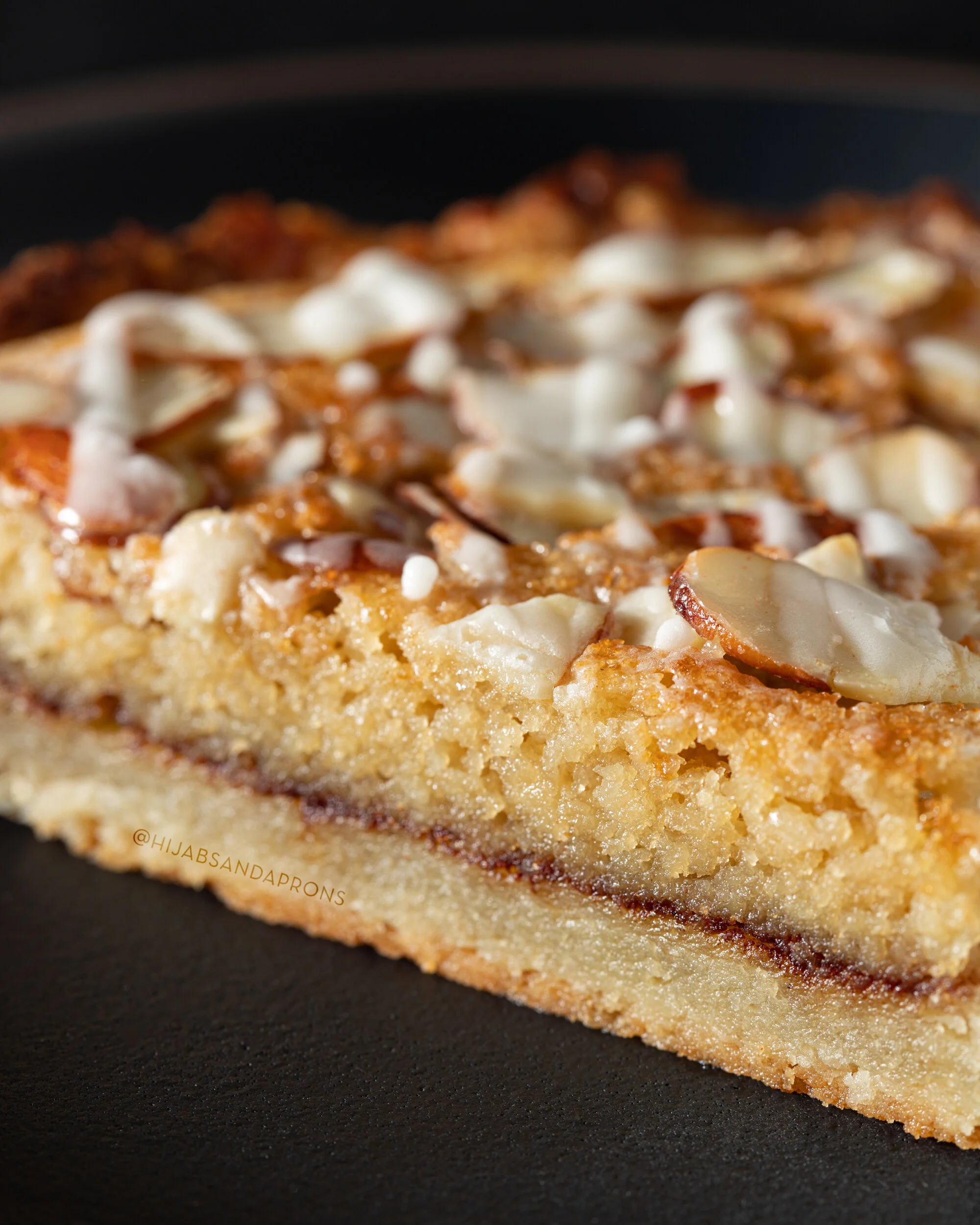 Note: If you wait a while to pour the filling into the tart (like I did in my demo video on Instagram), the filling will set/thicken up a bit and you’ll need to use your fingers to get it off the spatula.Sprinkle the sliced almonds evenly across the top of the tart.