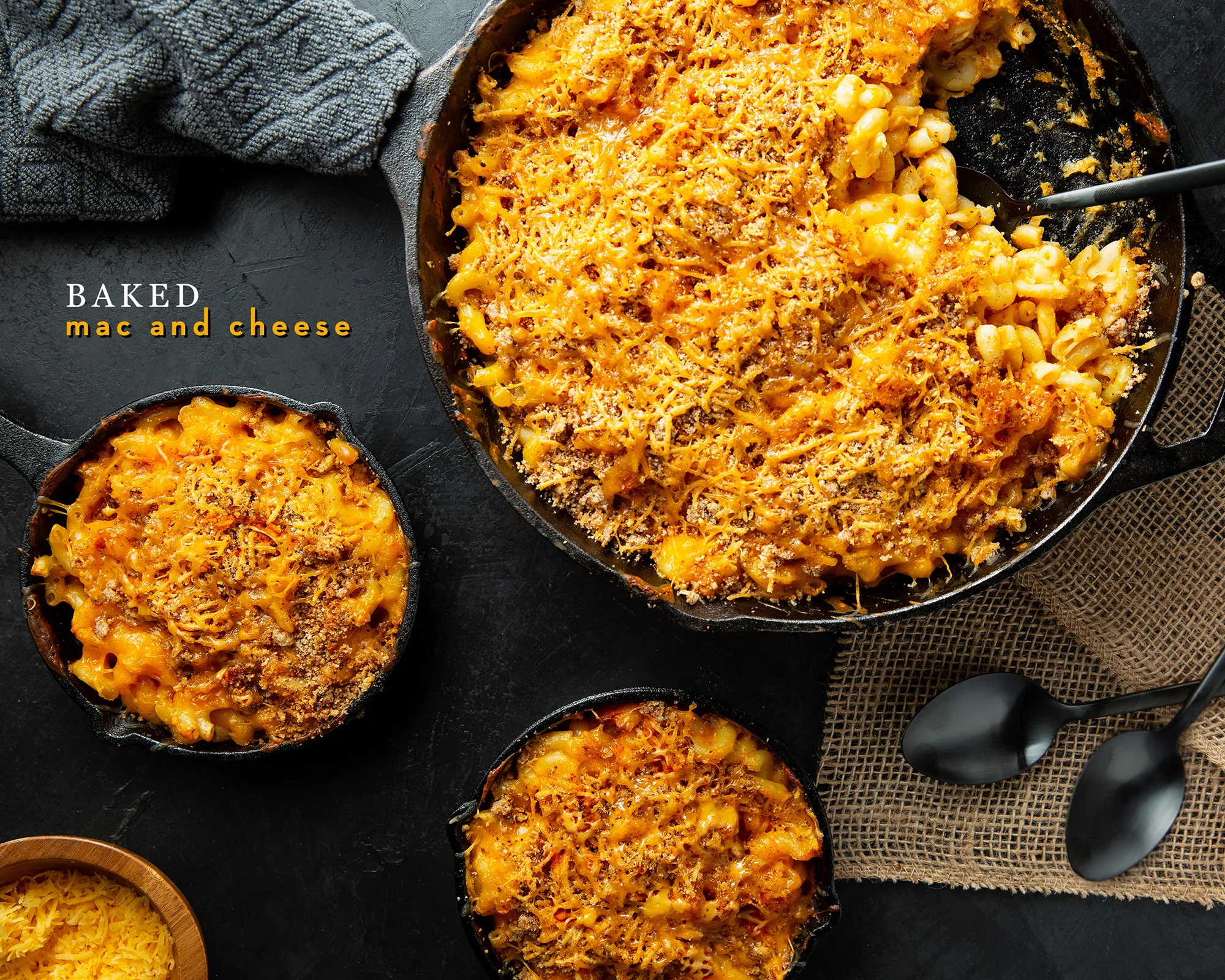 SERVE! Tabasco, Tapatio, or Frank’s Red Hot Buffalo Sauce would complement this baked mac and cheese quite well.